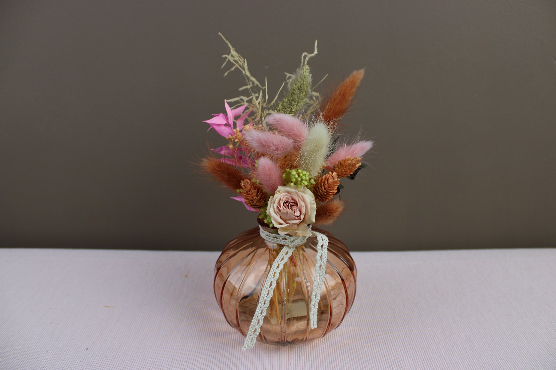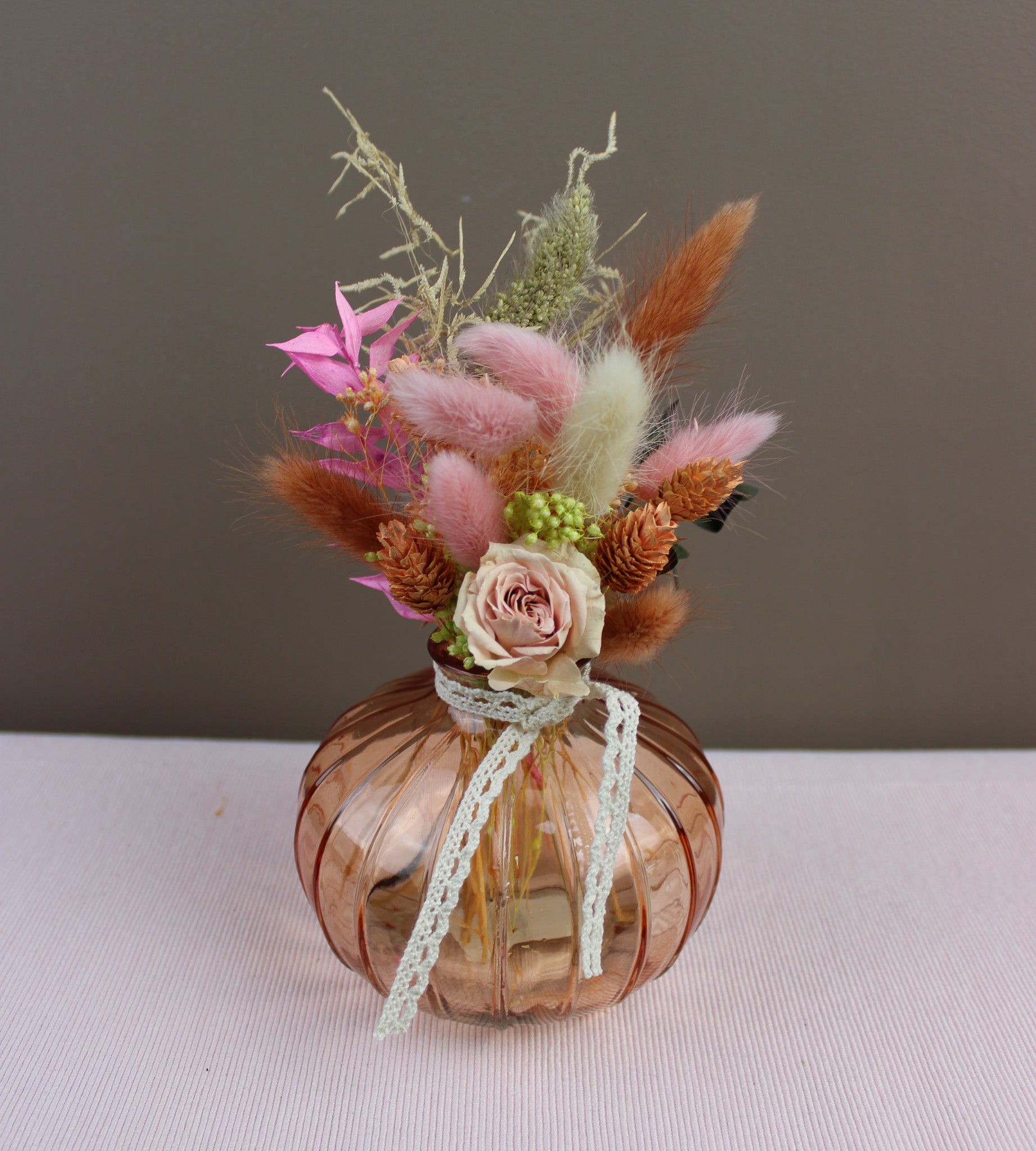 H 8,5 cm dia 10 cm - gevuld met prachtige droogbloemetjes